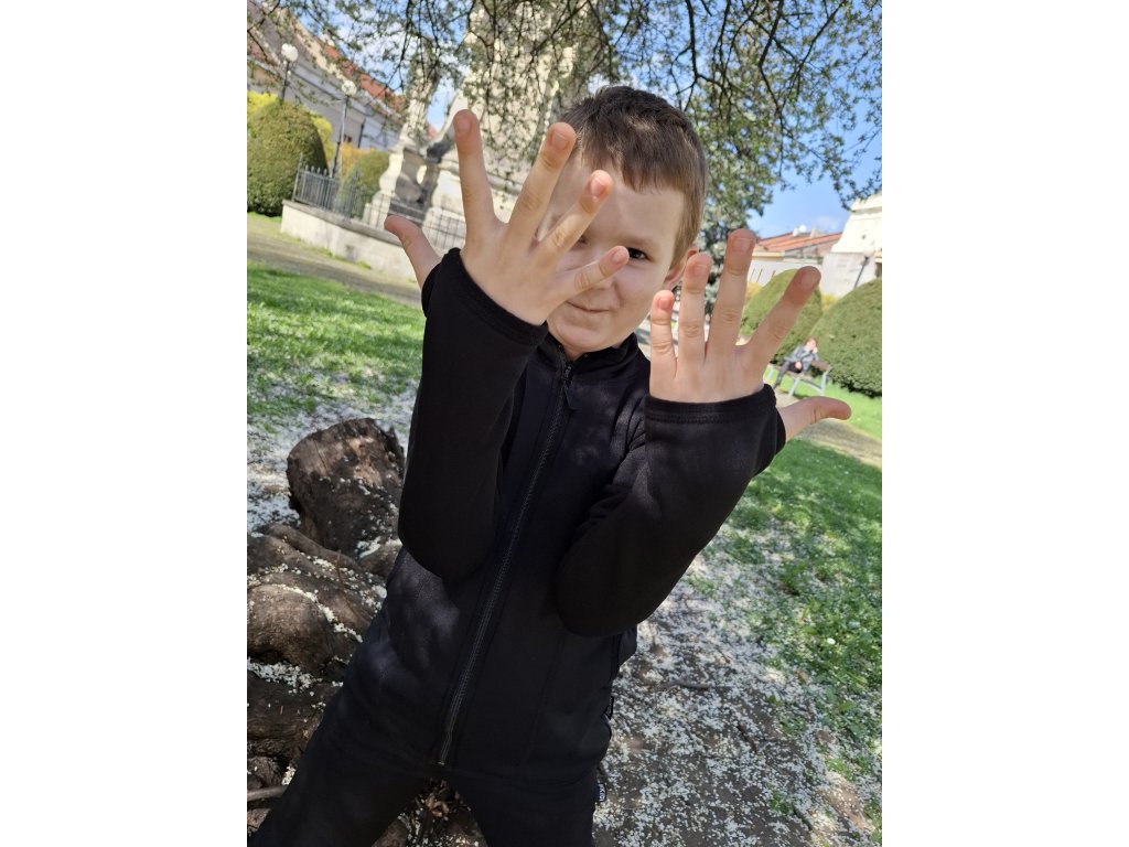 Vnútorná strana je príjemne hrejivá a hebká s jemným hrejivým chĺpkom, vonkajší povrch je odolný voči oderu. Mikina má celorozopínací zips, praktické vrecká a otvory na palce, ktoré oceníte v chladnejšom počasí alebo pri obliekaní vrchnej bundy.