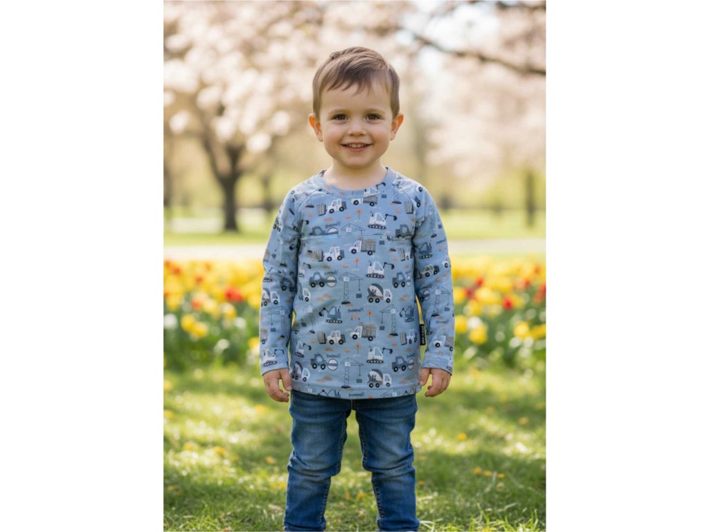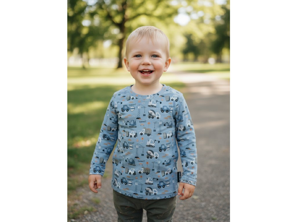 Farebná potlač s motívom stavebných autíčok, žeriavov či bagrov si získa každého drobca.