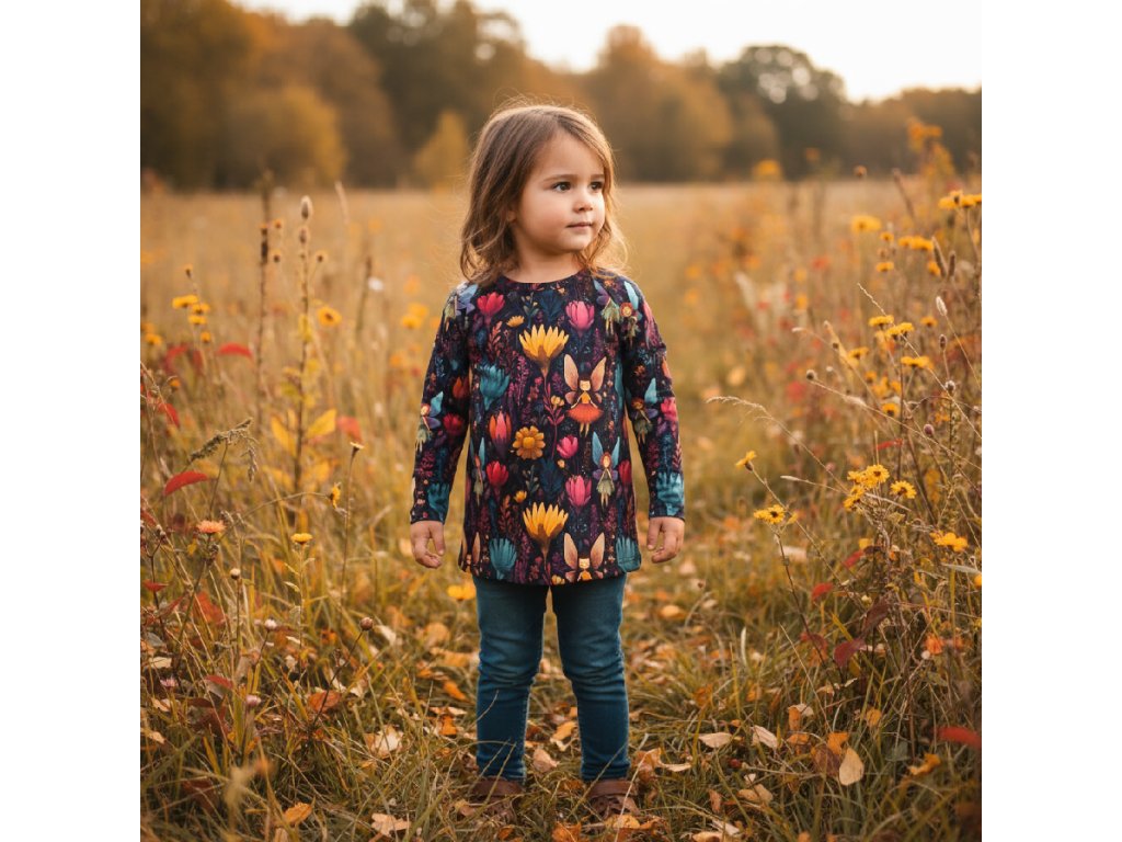 Vzor plný kvetov a víl prináša do každého dňa trošku kúzla a fantázie. Tričko pôsobí originálne a veselo, no zároveň je praktické.
